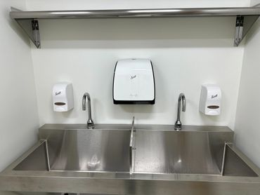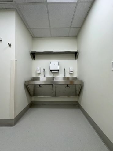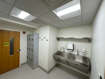 This project consisted in the modification of an existing storage area into an anteroom for the Bone Marrow Transplant access. The job included the addition of a new scrub sink, automatic door operators, lockers, and finishes. The project required the highest level IRCA requirements level due to the immunocompromised patients.